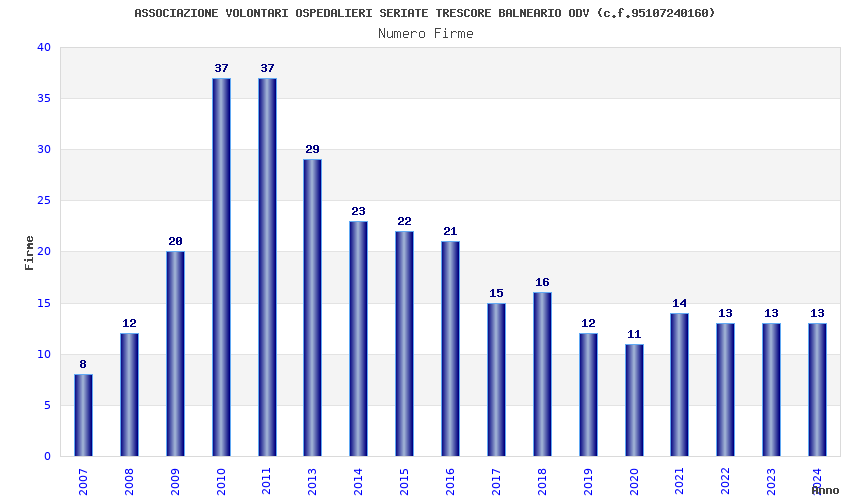 | Anno | Firme | Importi | Media | Naz. | Reg. | Prov. | Comu. |