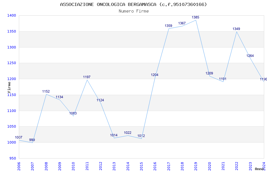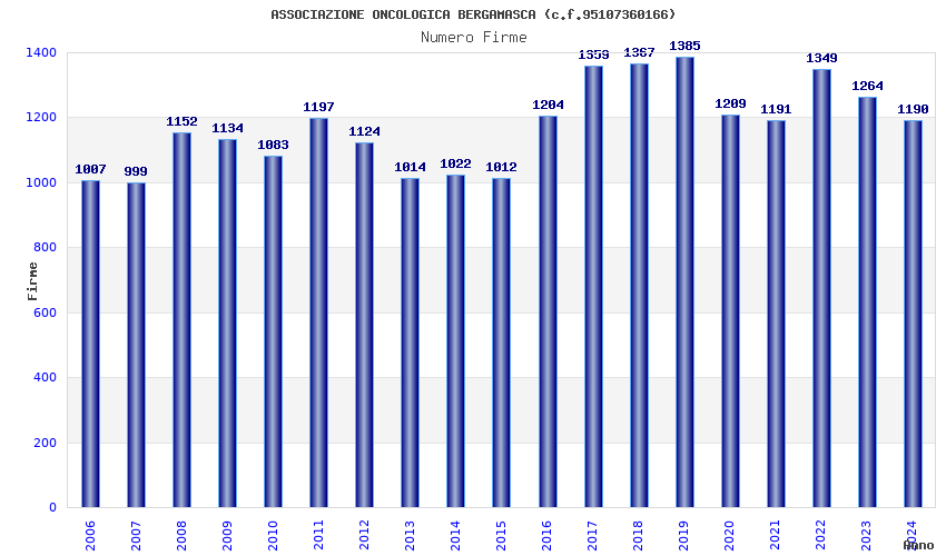 | Anno | Firme | Importi | Media | Naz. | Reg. | Prov. | Comu. |