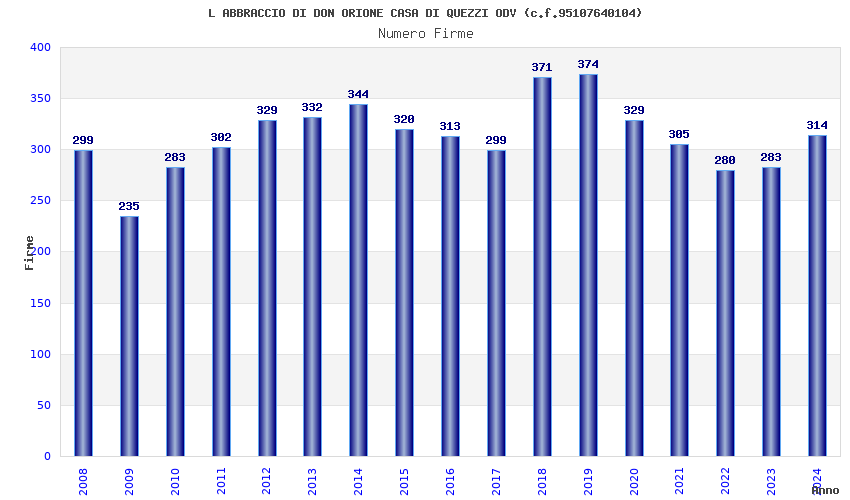 | Anno | Firme | Importi | Media | Naz. | Reg. | Prov. | Comu. |
