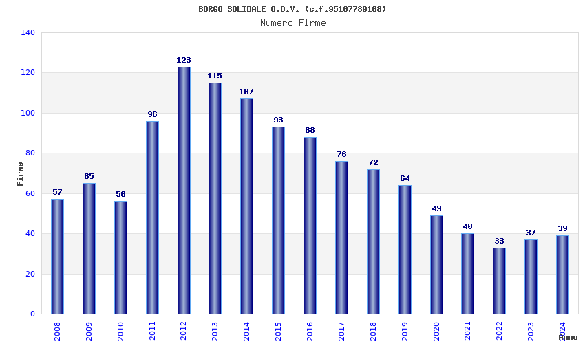| Anno | Firme | Importi | Media | Naz. | Reg. | Prov. | Comu. |