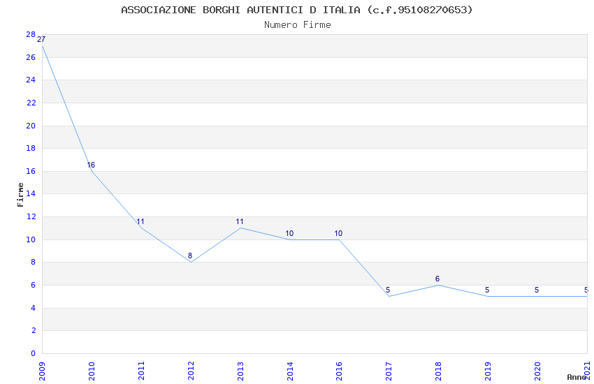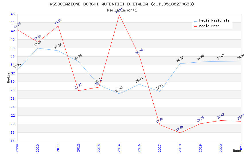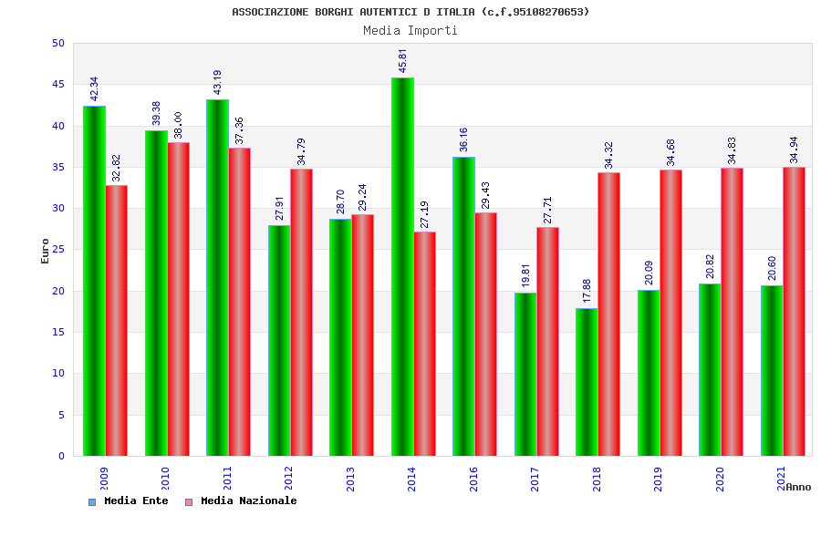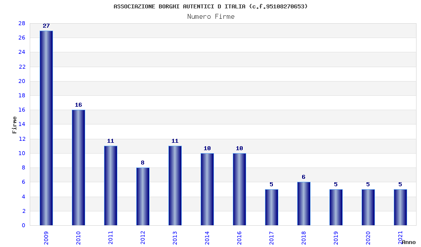 | Anno | Firme | Importi | Media | Naz. | Reg. | Prov. | Comu. |