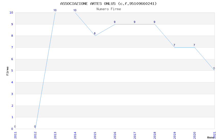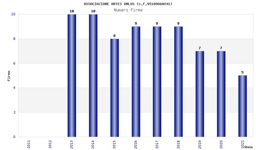 | Anno | Firme | Importi | Media | Naz. | Reg. | Prov. | Comu. |