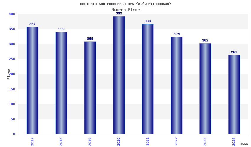| Anno | Firme | Importi | Media | Naz. | Reg. | Prov. | Comu. |