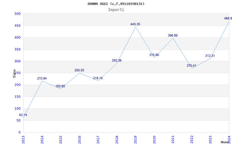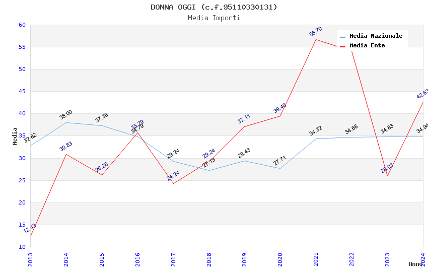 | Anno | Firme | Importi | Media | Naz. | Reg. | Prov. | Comu. |