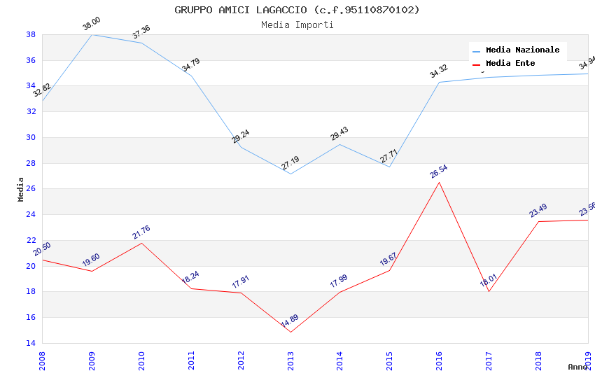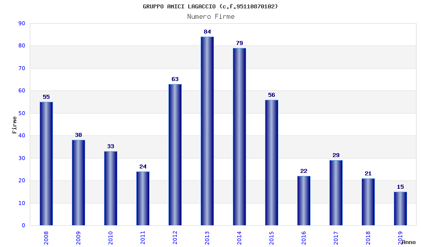 | Anno | Firme | Importi | Media | Naz. | Reg. | Prov. | Comu. |
