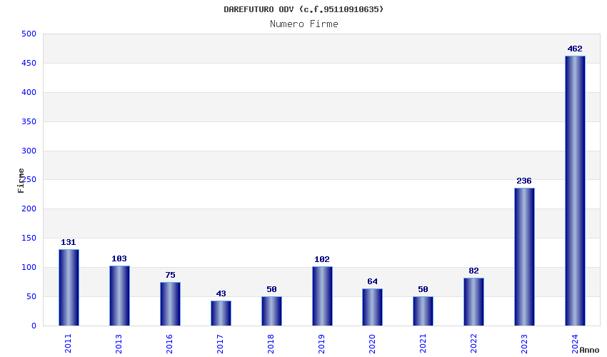 | Anno | Firme | Importi | Media | Naz. | Reg. | Prov. | Comu. |
