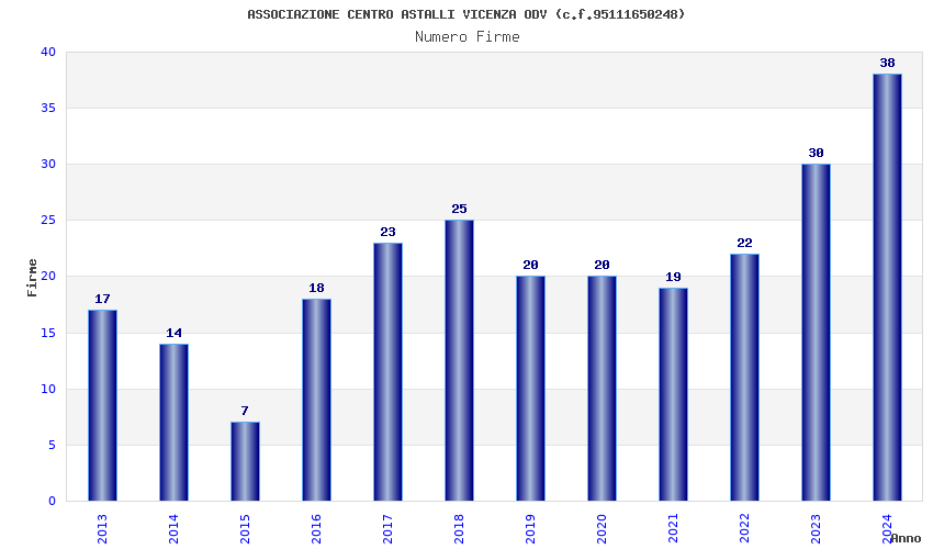 | Anno | Firme | Importi | Media | Naz. | Reg. | Prov. | Comu. |