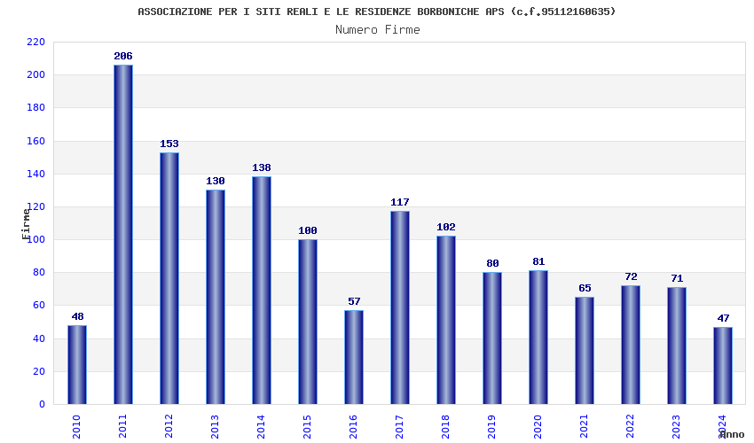 | Anno | Firme | Importi | Media | Naz. | Reg. | Prov. | Comu. |