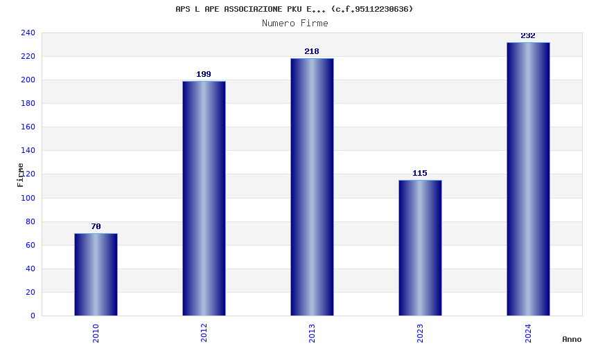 | Anno | Firme | Importi | Media | Naz. | Reg. | Prov. | Comu. |