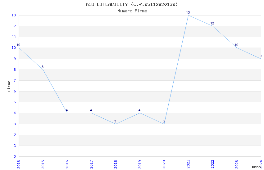 | 2021 | 13 | 318,83 | 24,53 | 53.733 | 10.428 | 964 | 6 |