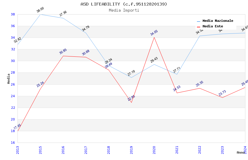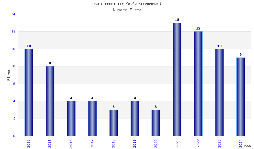 | Anno | Firme | Importi | Media | Naz. | Reg. | Prov. | Comu. |