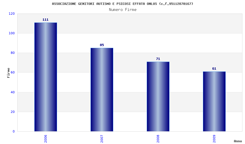 | Anno | Firme | Importi | Media | Naz. | Reg. | Prov. | Comu. |
