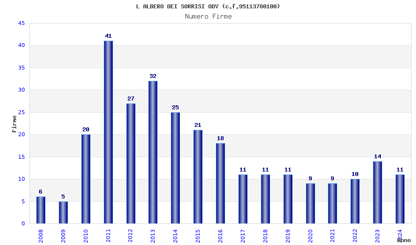 | Anno | Firme | Importi | Media | Naz. | Reg. | Prov. | Comu. |
