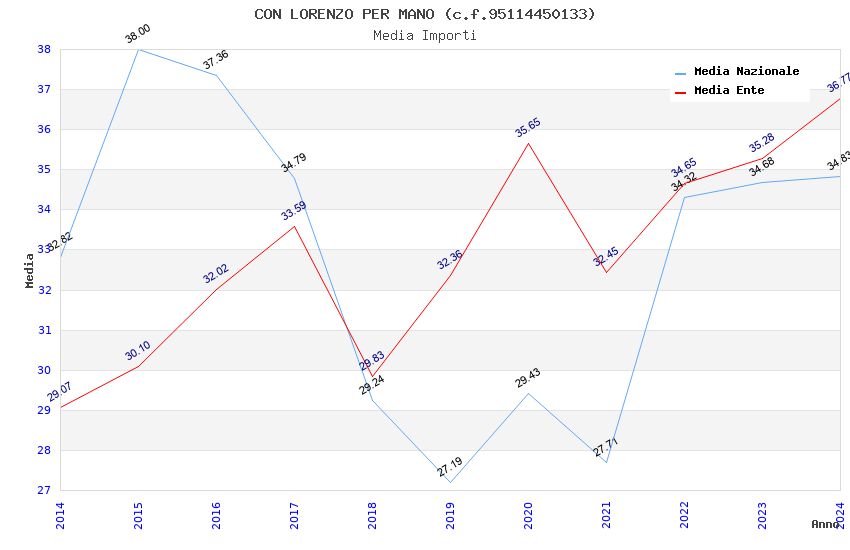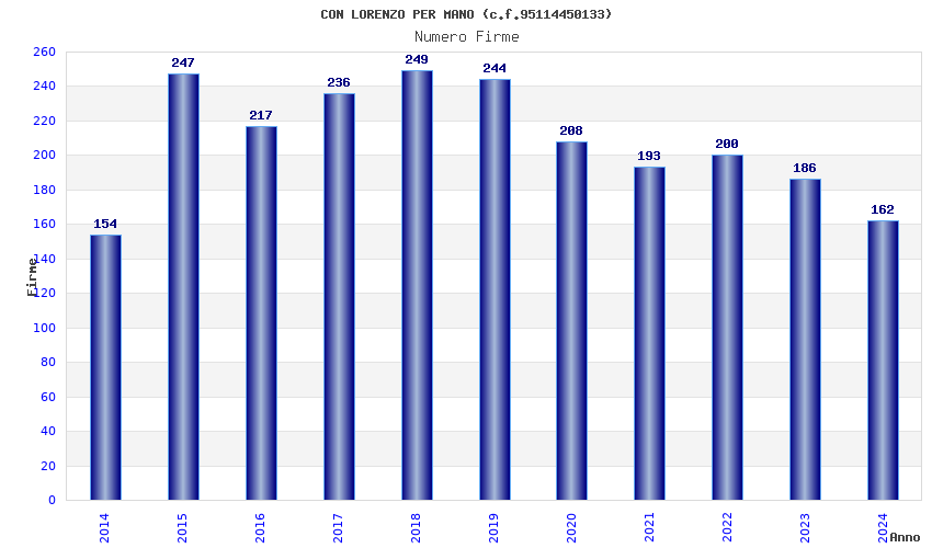 | Anno | Firme | Importi | Media | Naz. | Reg. | Prov. | Comu. |