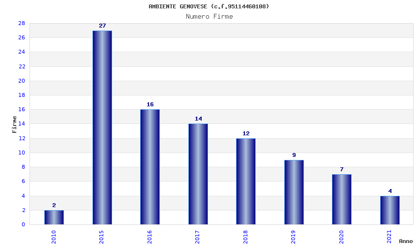 | Anno | Firme | Importi | Media | Naz. | Reg. | Prov. | Comu. |