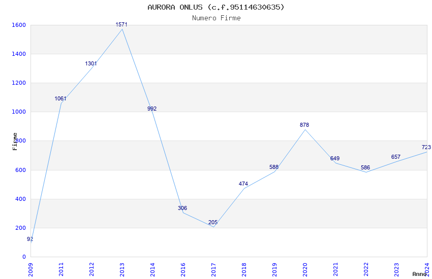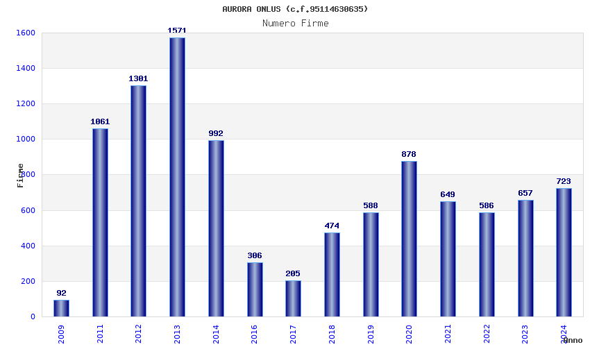 | Anno | Firme | Importi | Media | Naz. | Reg. | Prov. | Comu. |