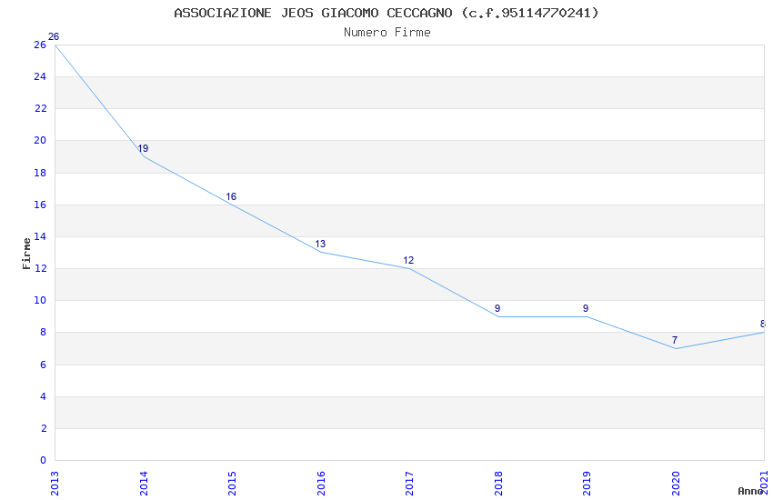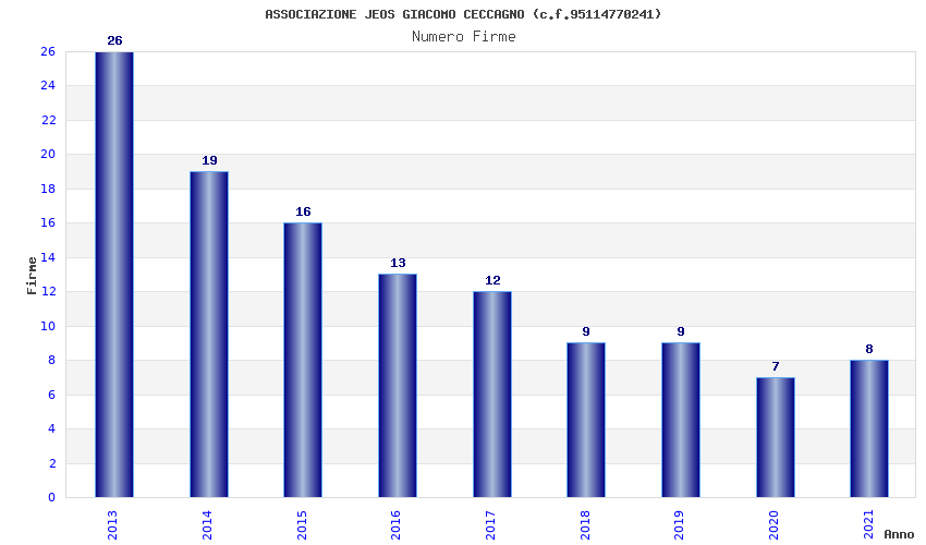 | Anno | Firme | Importi | Media | Naz. | Reg. | Prov. | Comu. |