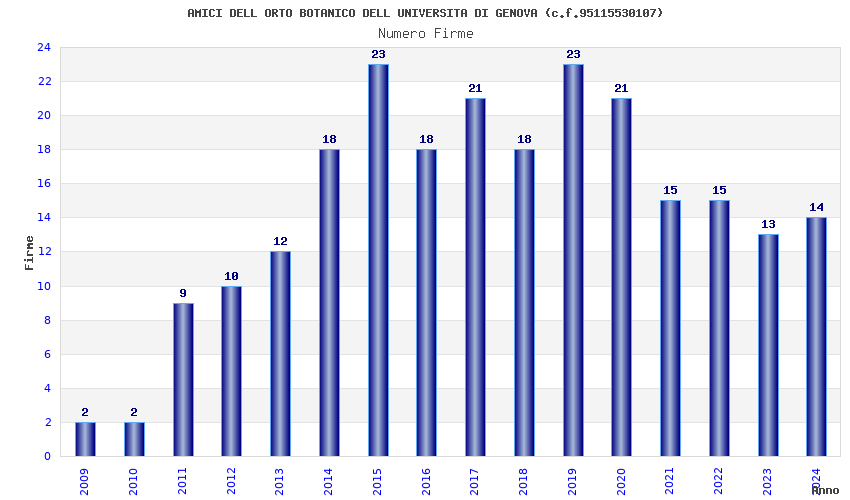 | Anno | Firme | Importi | Media | Naz. | Reg. | Prov. | Comu. |