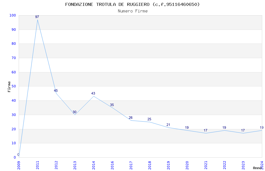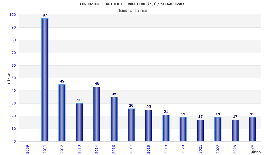 | Anno | Firme | Importi | Media | Naz. | Reg. | Prov. | Comu. |