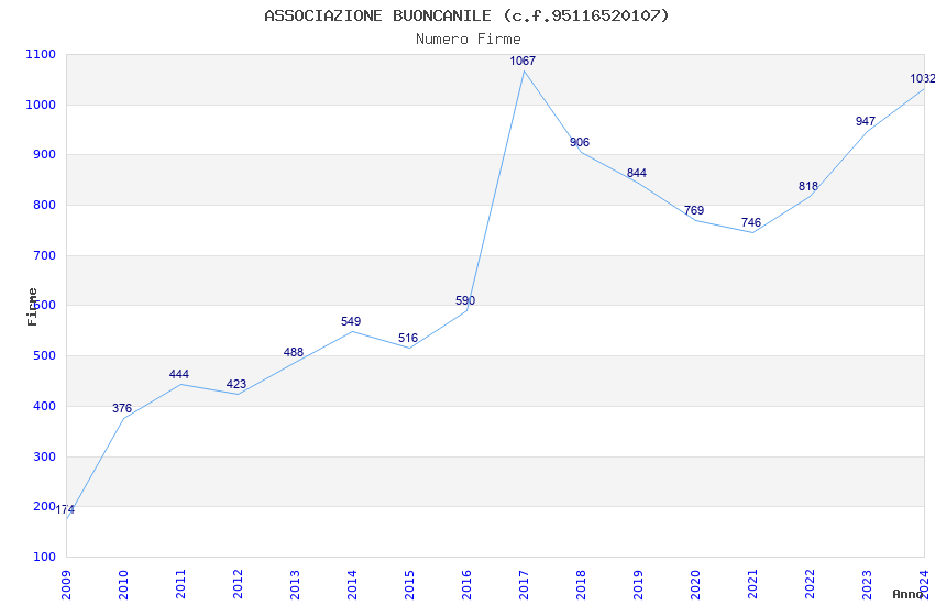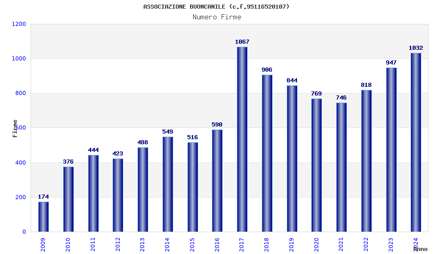 | Anno | Firme | Importi | Media | Naz. | Reg. | Prov. | Comu. |