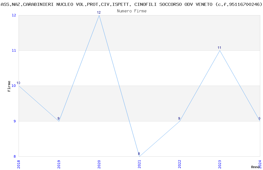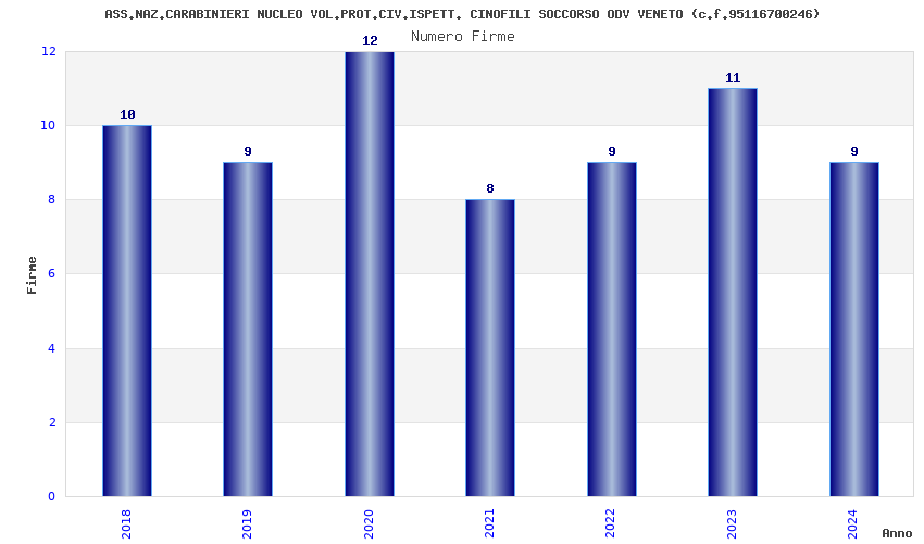 | Anno | Firme | Importi | Media | Naz. | Reg. | Prov. | Comu. |