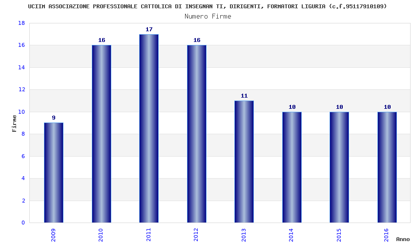 | Anno | Firme | Importi | Media | Naz. | Reg. | Prov. | Comu. |