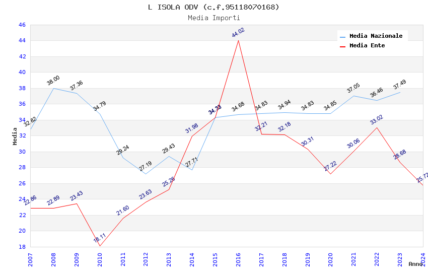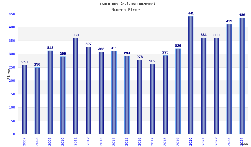 | Anno | Firme | Importi | Media | Naz. | Reg. | Prov. | Comu. |
