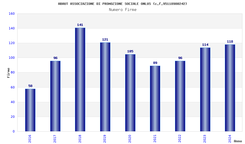 | Anno | Firme | Importi | Media | Naz. | Reg. | Prov. | Comu. |