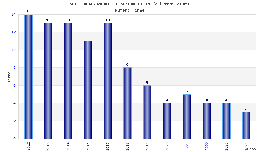 | Anno | Firme | Importi | Media | Naz. | Reg. | Prov. | Comu. |