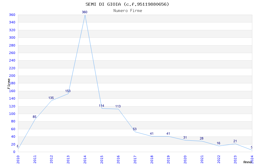 | 2014 | 360 | 5.038,98 | 14,00 | 10.767 | 616 | 131 | 3 |
