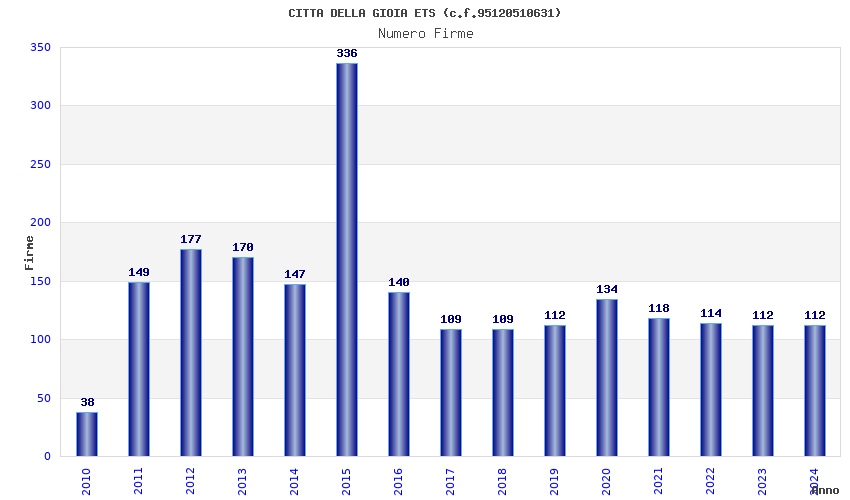| Anno | Firme | Importi | Media | Naz. | Reg. | Prov. | Comu. |