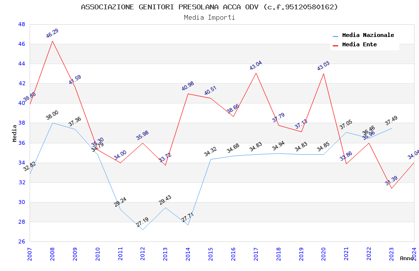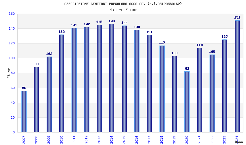 | Anno | Firme | Importi | Media | Naz. | Reg. | Prov. | Comu. |