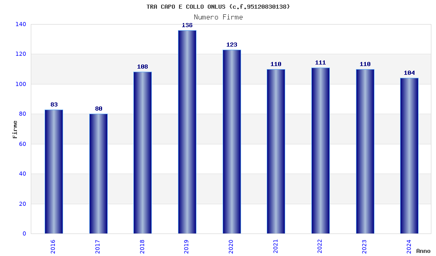 | Anno | Firme | Importi | Media | Naz. | Reg. | Prov. | Comu. |