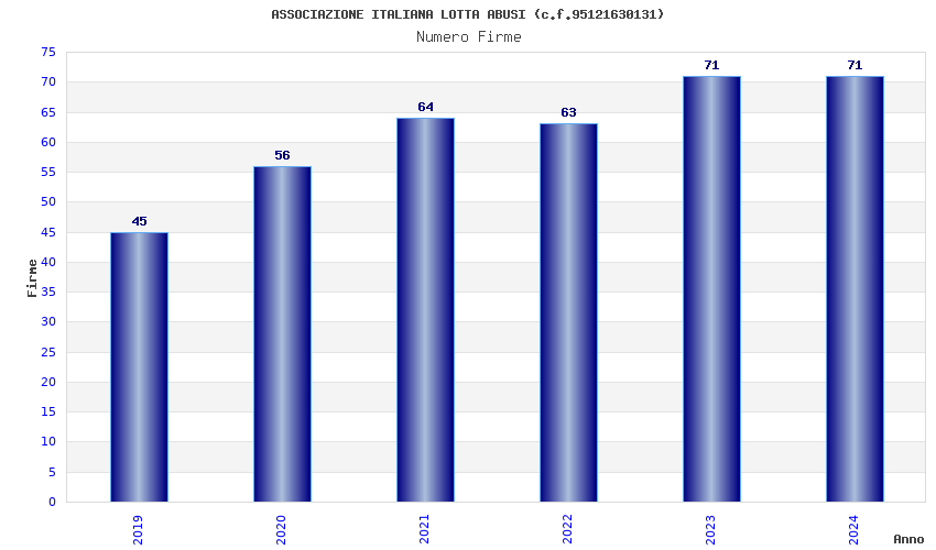| Anno | Firme | Importi | Media | Naz. | Reg. | Prov. | Comu. |