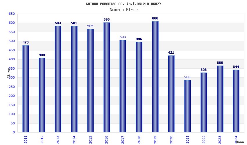 | Anno | Firme | Importi | Media | Naz. | Reg. | Prov. | Comu. |