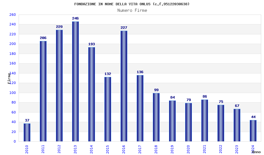 | Anno | Firme | Importi | Media | Naz. | Reg. | Prov. | Comu. |