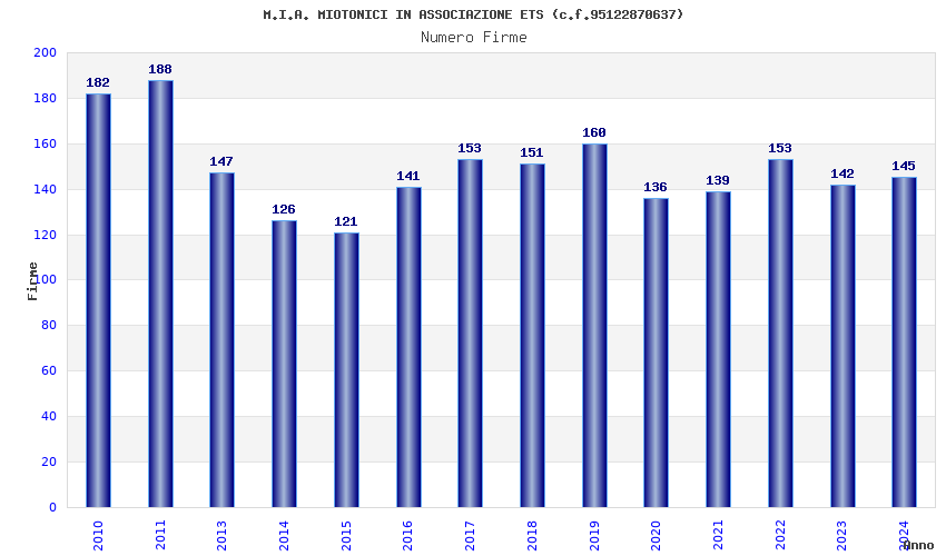 | Anno | Firme | Importi | Media | Naz. | Reg. | Prov. | Comu. |