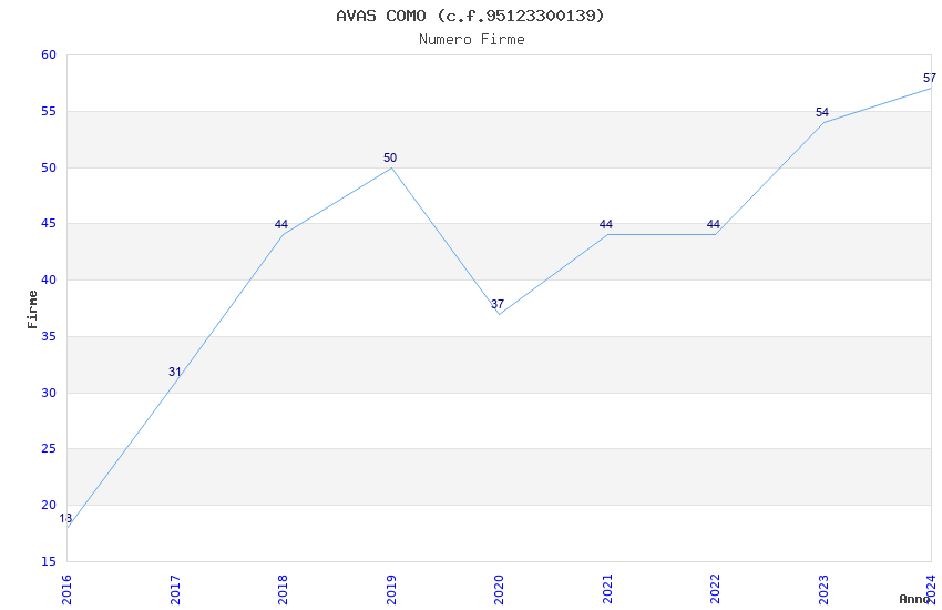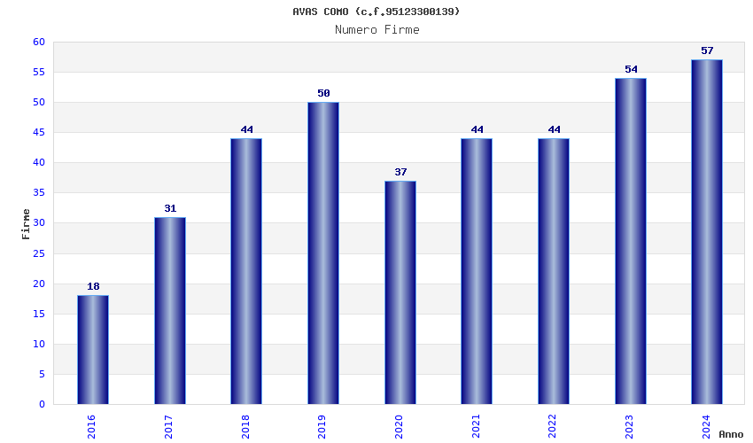 | Anno | Firme | Importi | Media | Naz. | Reg. | Prov. | Comu. |