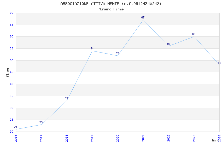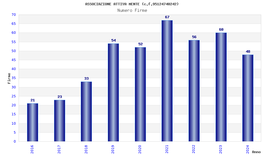| 2021 | 67 | 2.033,86 | 30,36 | 23.653 | 2.190 | 378 | 5 |