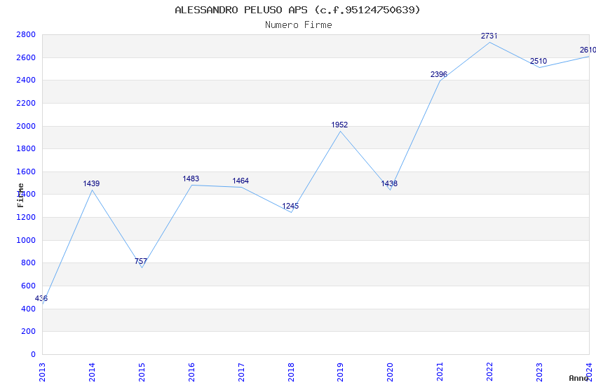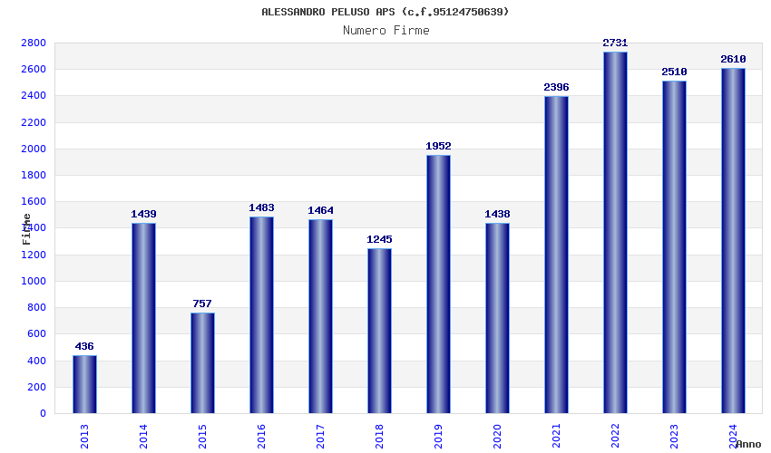 | Anno | Firme | Importi | Media | Naz. | Reg. | Prov. | Comu. |