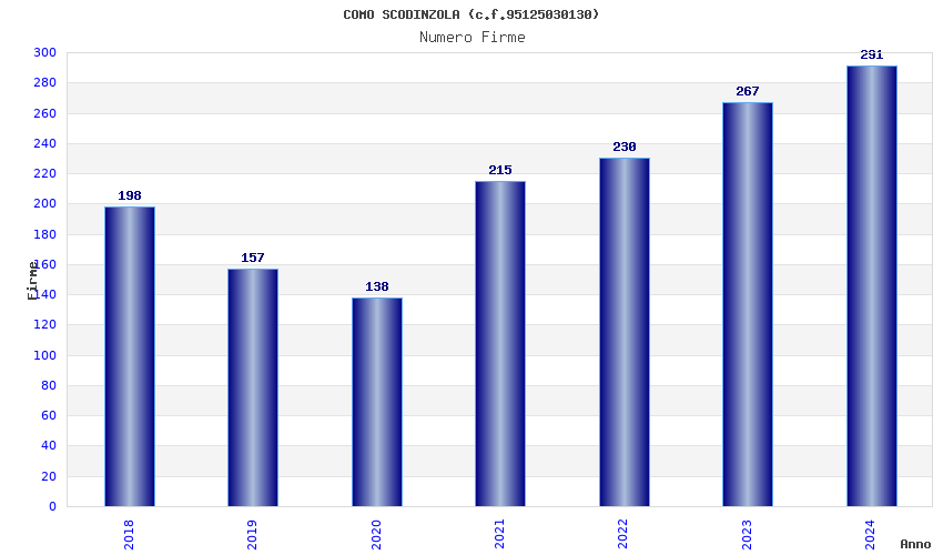 | Anno | Firme | Importi | Media | Naz. | Reg. | Prov. | Comu. |