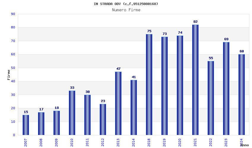 | 2023 | 69 | 3.709,23 | 53,76 | 14.410 | 3.192 | 325 | 1 |