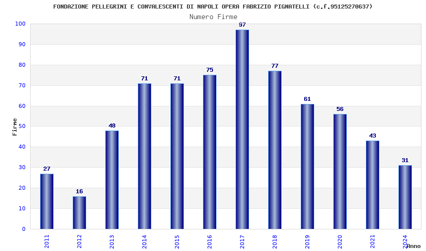 | Anno | Firme | Importi | Media | Naz. | Reg. | Prov. | Comu. |