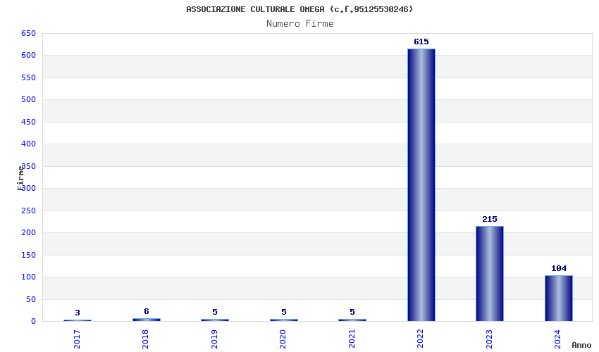 | Anno | Firme | Importi | Media | Naz. | Reg. | Prov. | Comu. |