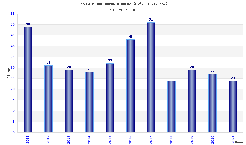 | Anno | Firme | Importi | Media | Naz. | Reg. | Prov. | Comu. |