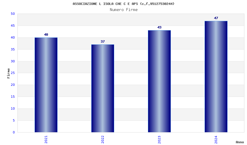 | Anno | Firme | Importi | Media | Naz. | Reg. | Prov. | Comu. |