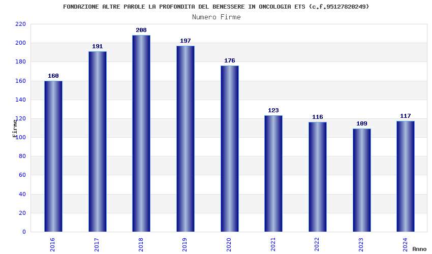 | Anno | Firme | Importi | Media | Naz. | Reg. | Prov. | Comu. |