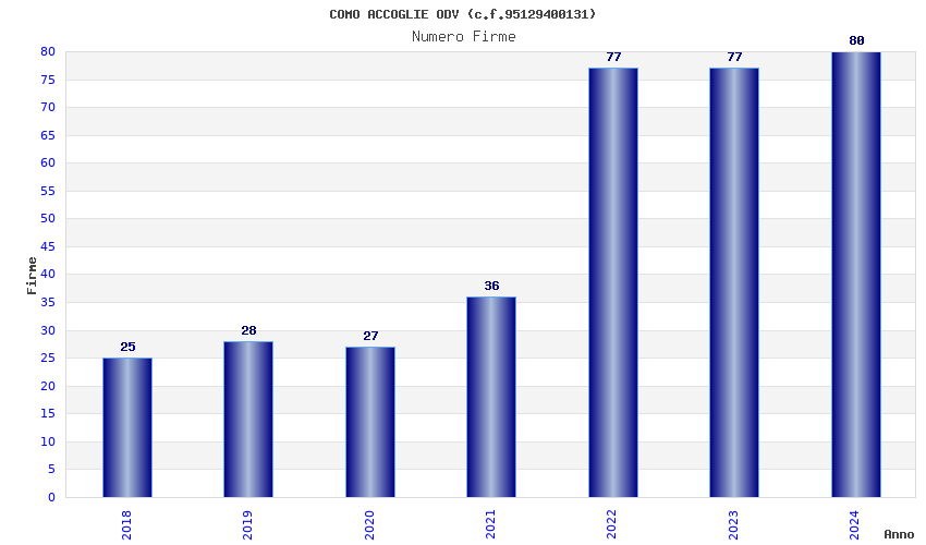 | Anno | Firme | Importi | Media | Naz. | Reg. | Prov. | Comu. |