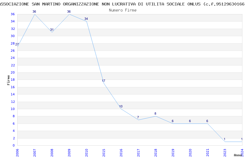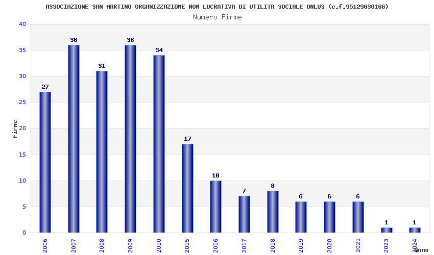 | Anno | Firme | Importi | Media | Naz. | Reg. | Prov. | Comu. |