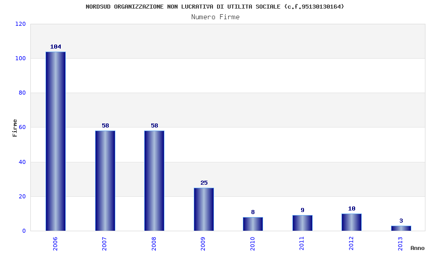 | Anno | Firme | Importi | Media | Naz. | Reg. | Prov. | Comu. |